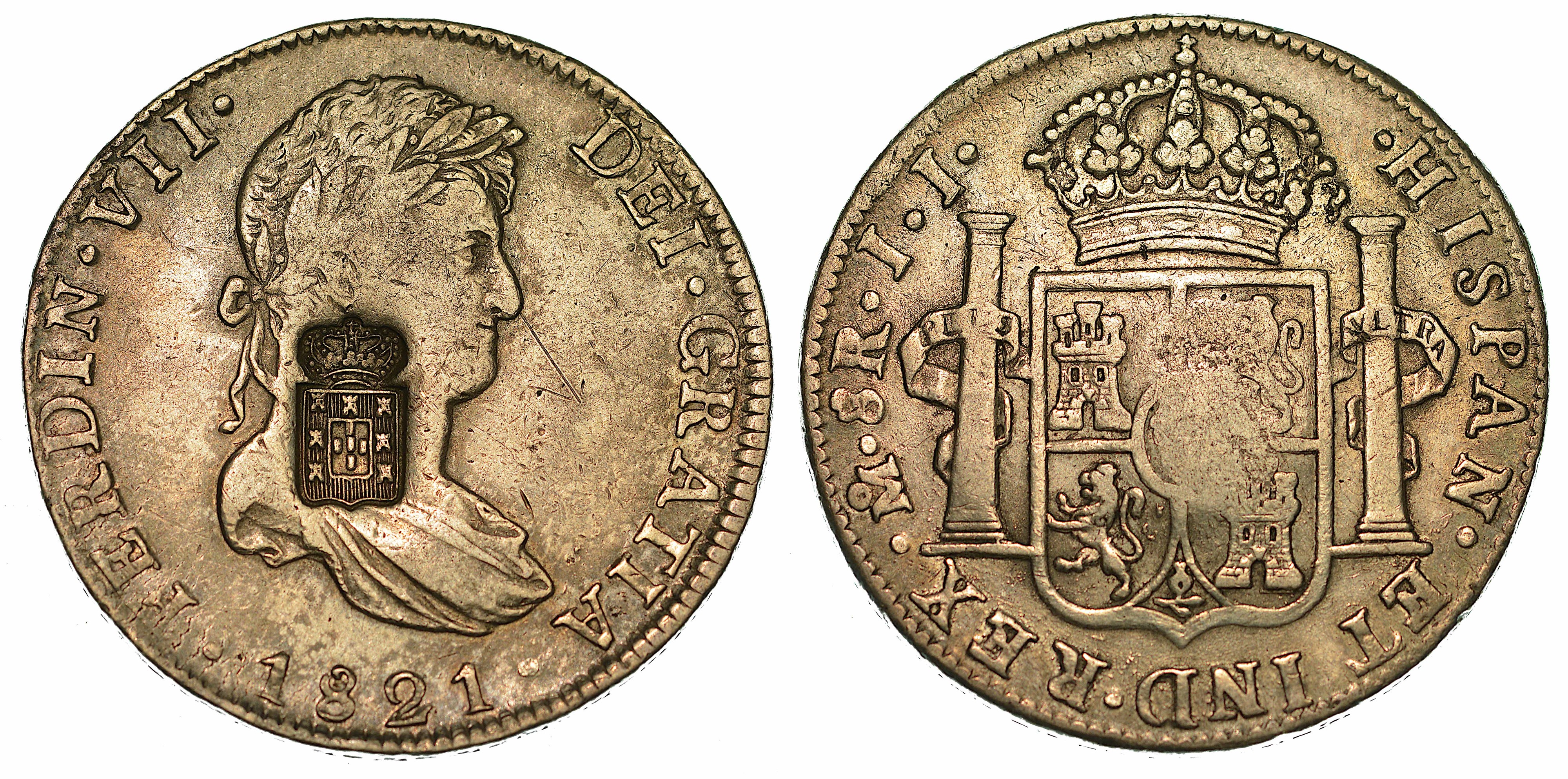 SPAGNA. FERNANDO VII, 1808-1833. 8 Reales 1821 contromarcato con stemma del Port [..]