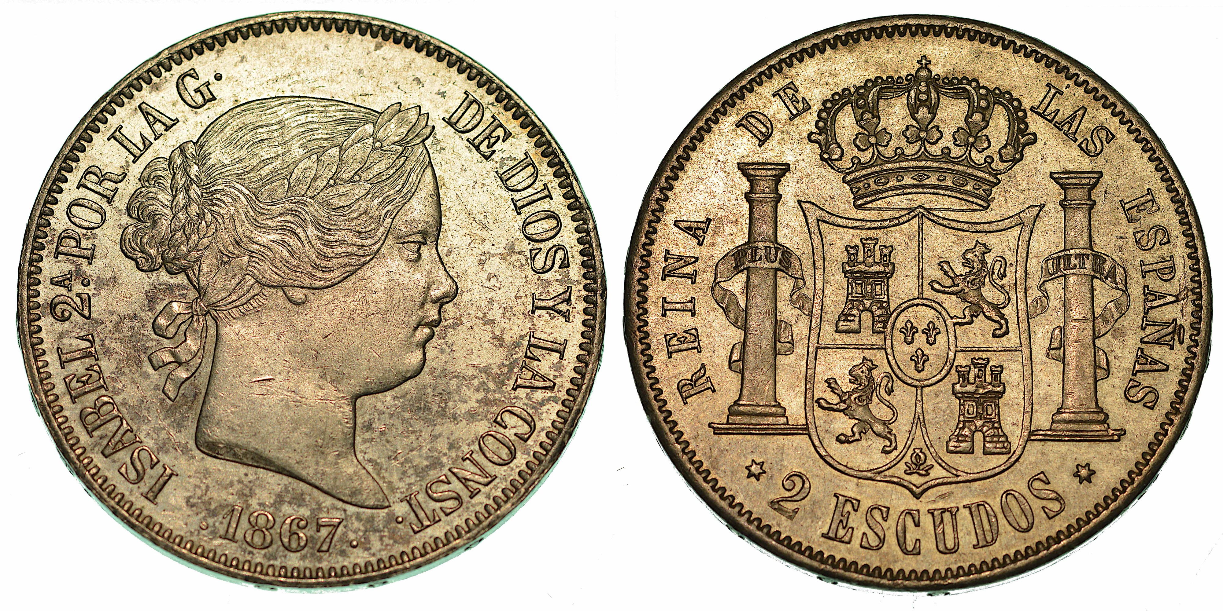 SPAGNA. ISABEL II, 1833-1868. 2 Escudos 1867.