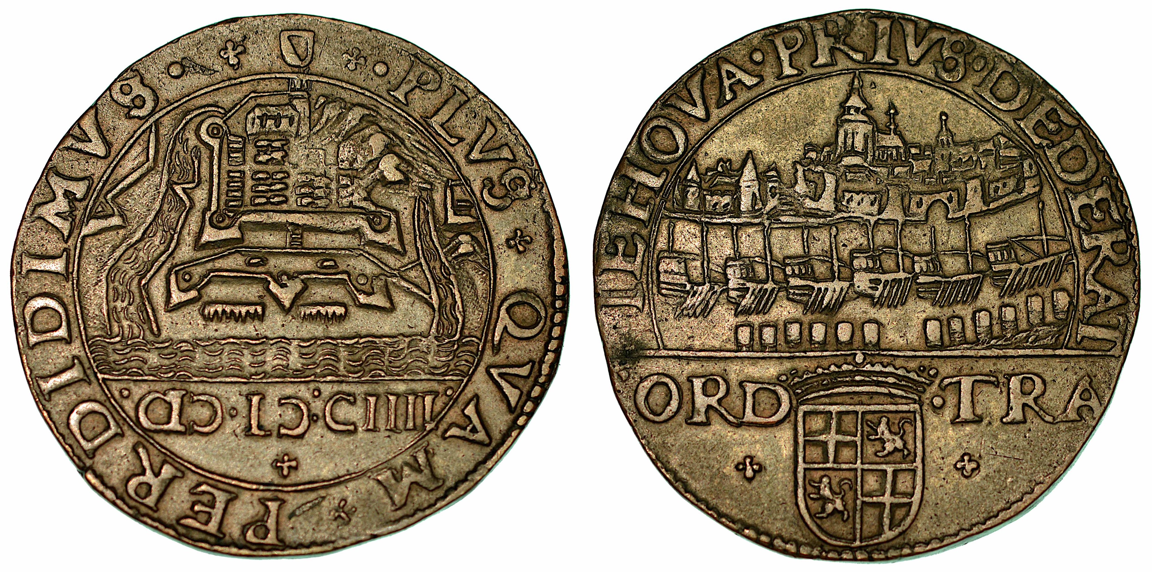 Spinola conquista Ostenda (22 settembre 1604). Gettone in rame 1604.