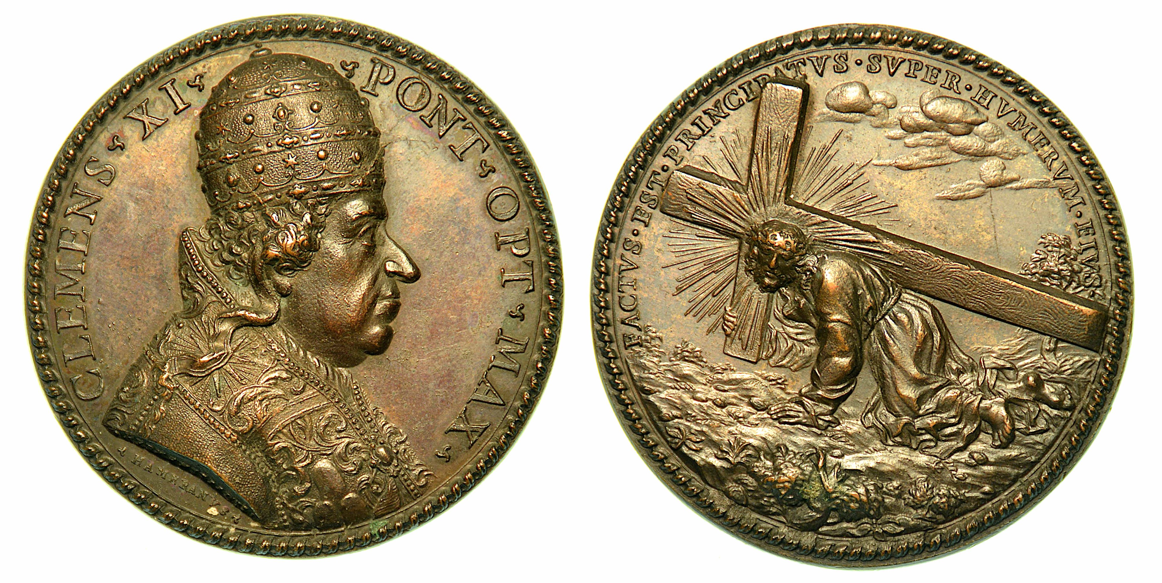 STATO PONTIFICIO. CLEMENTE XI, 1700-1721. ELEZIONE AL PONTIFICATO. Medaglia in bronzo [..]