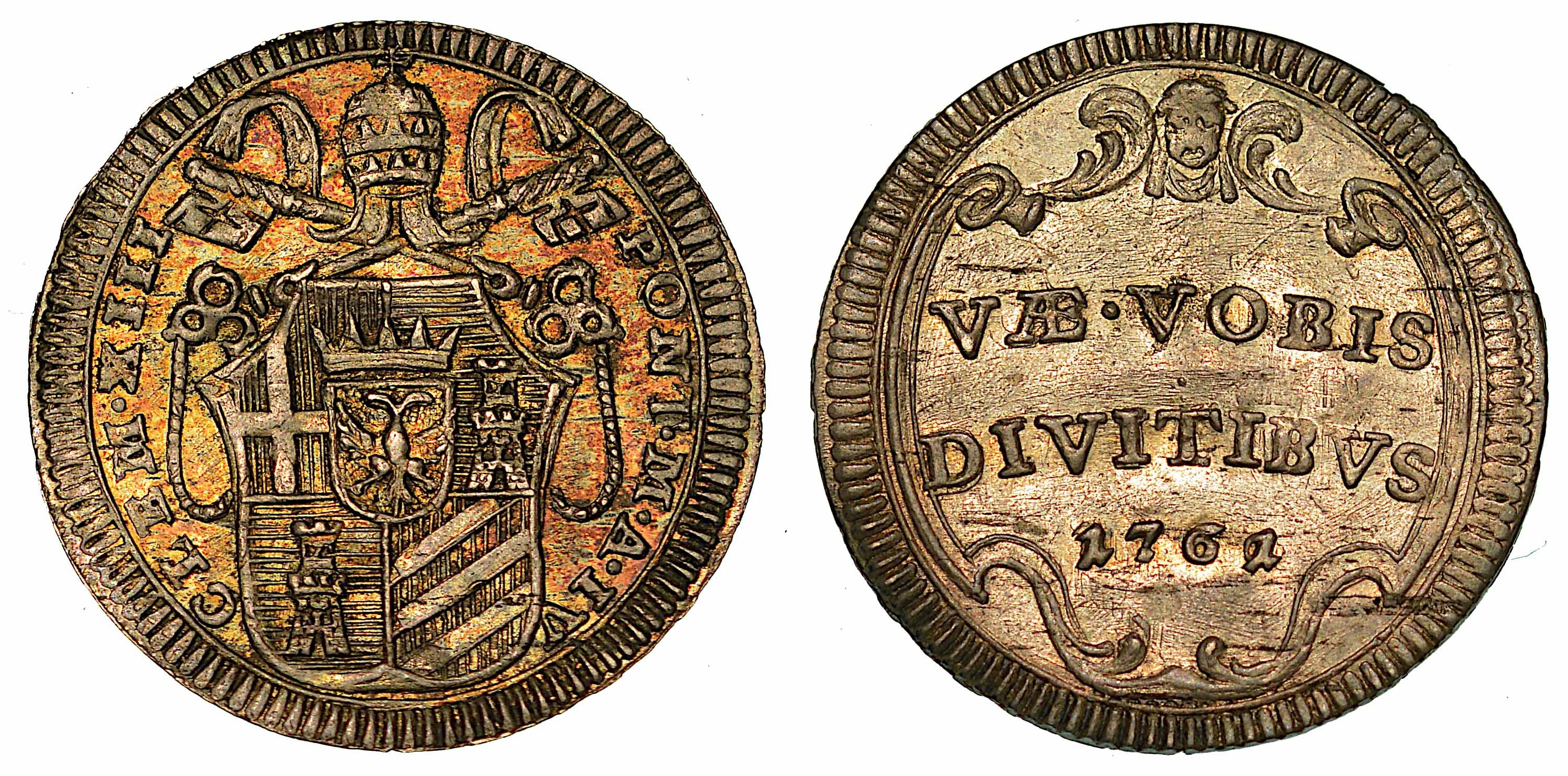 STATO PONTIFICIO. CLEMENTE XIII, 1758-1769. Mezzo Grosso 1762/A. IV.