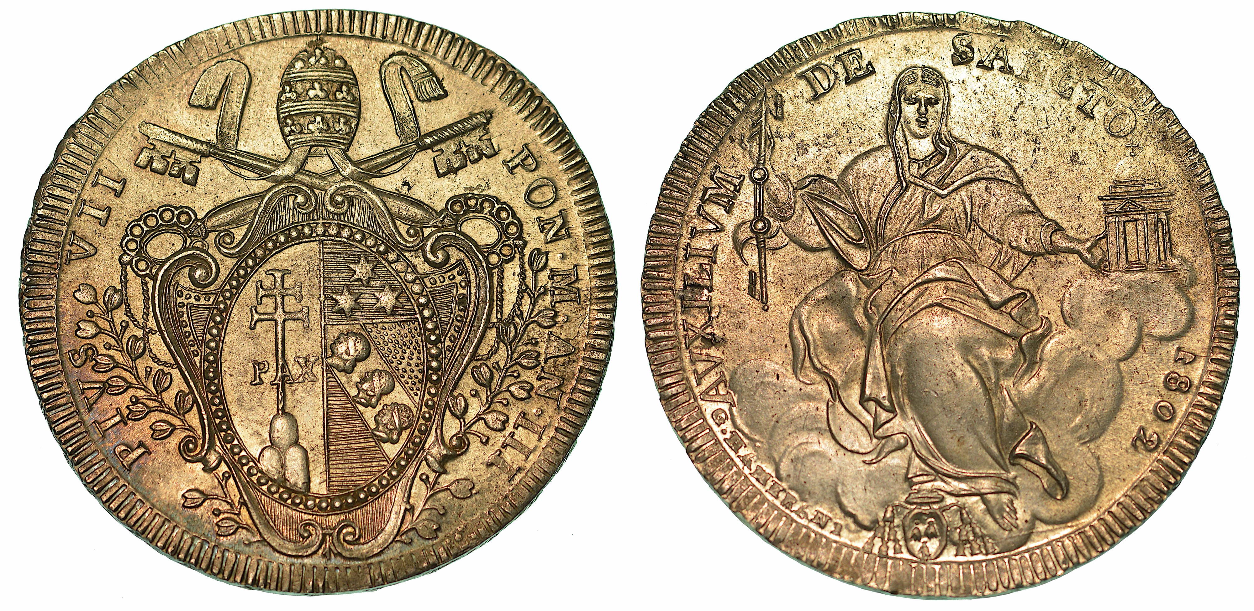 STATO PONTIFICIO. PIO VII, 1800-1823. Scudo 1802/A. III. Roma.
