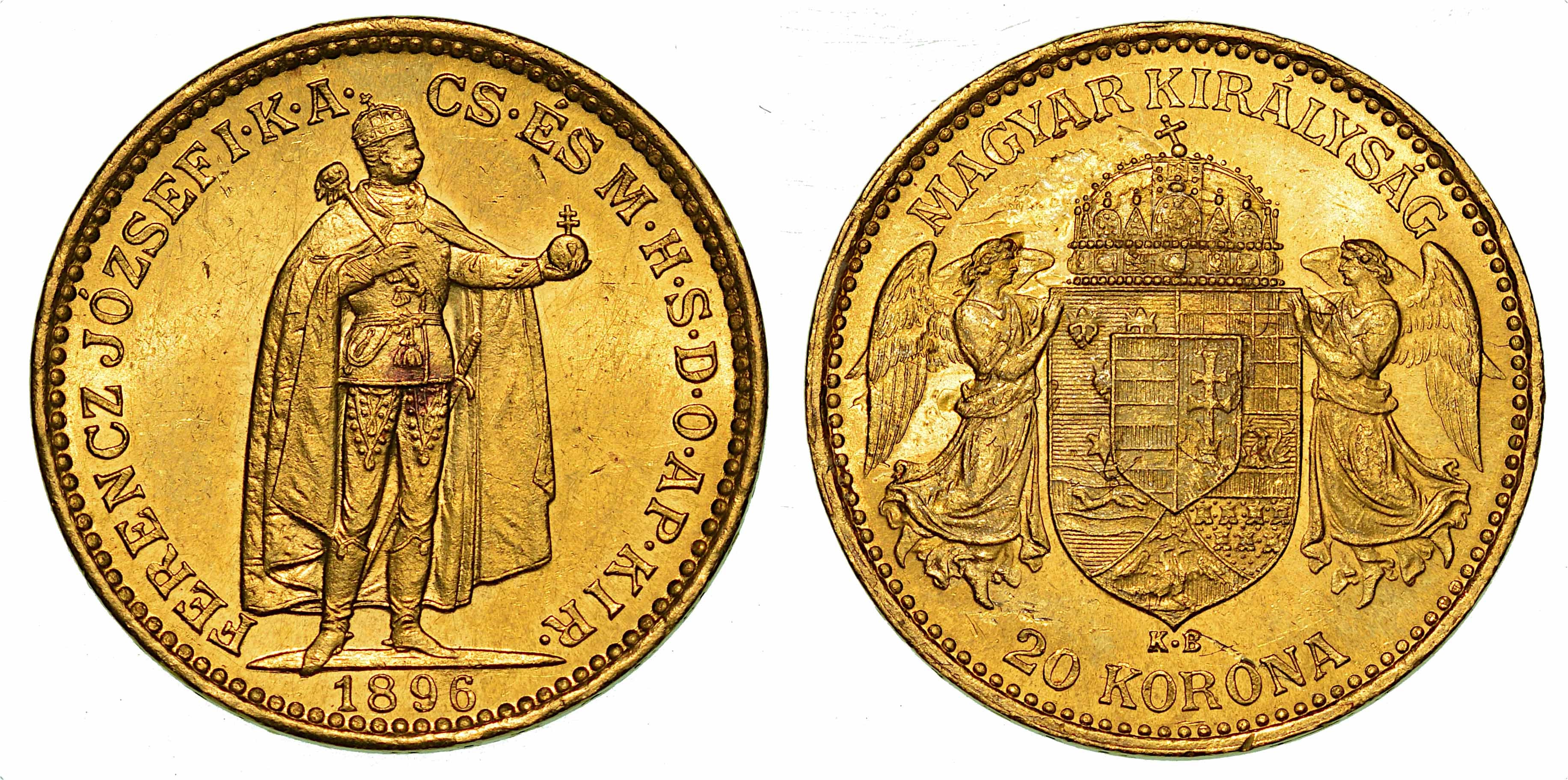 UNGHERIA. FRANZ JOSEPH, 1848-1916. 20 Korona 1896.