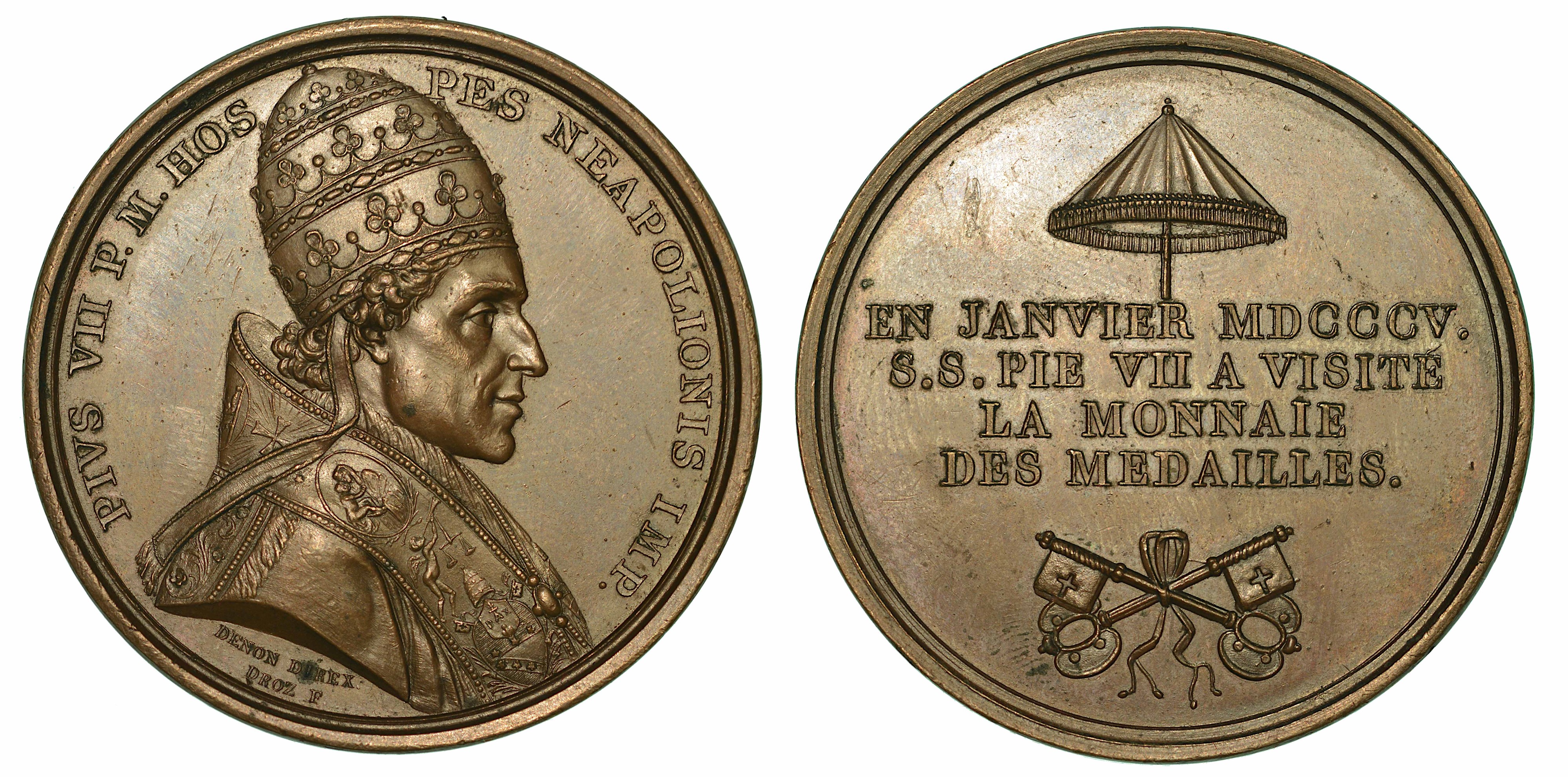 VISITA DI PIO VII ALLA ZECCA DI PARIGI. Medaglia in bronzo 1805.