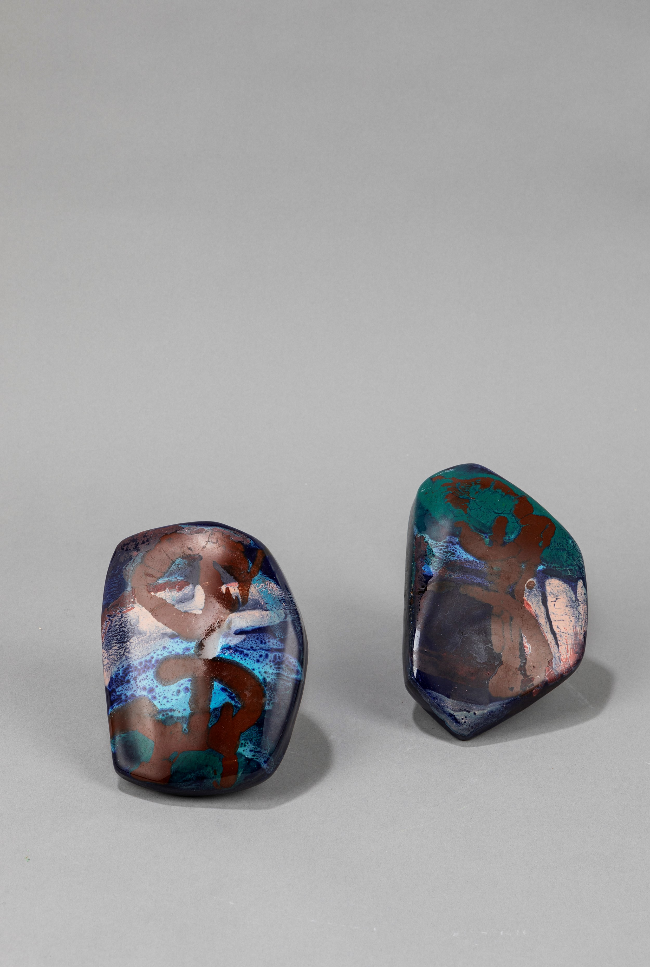 1950 ca. coppia in ceramica smaltata e supporto in metallo .