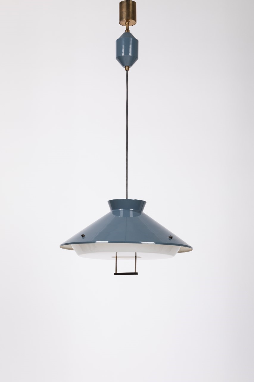 1950 regolabile in altezza, in alluminio smaltato e metacrilato bianco.