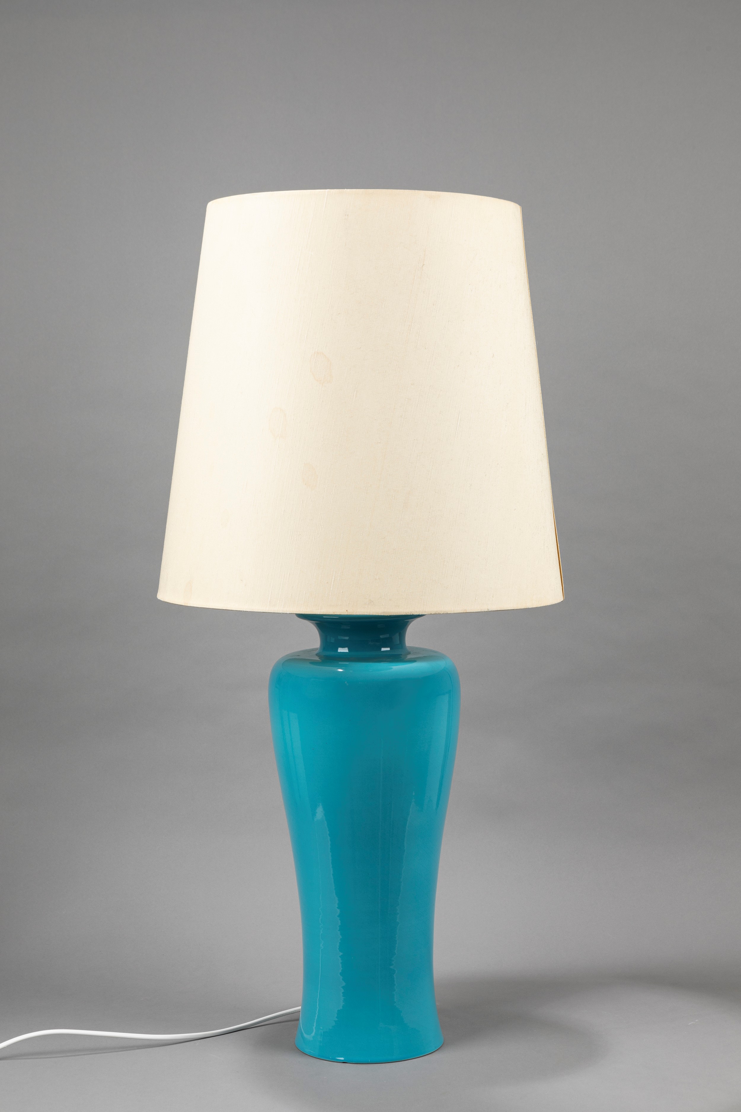 1960 ca. base in ceramica smaltata e diffusore in tessuto.