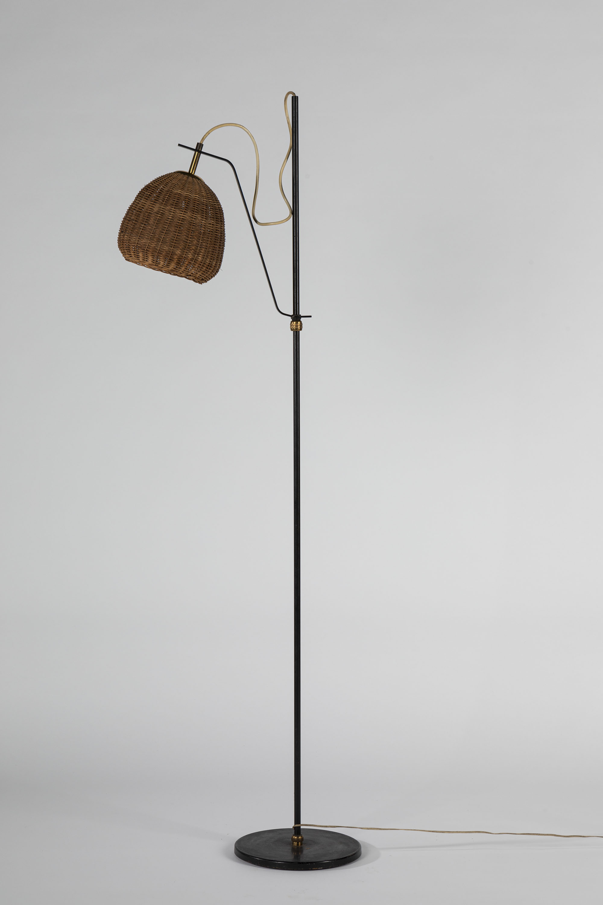 1950 ca. in metallo e diffusore in midollino di giunco. Regolabile in altezza.