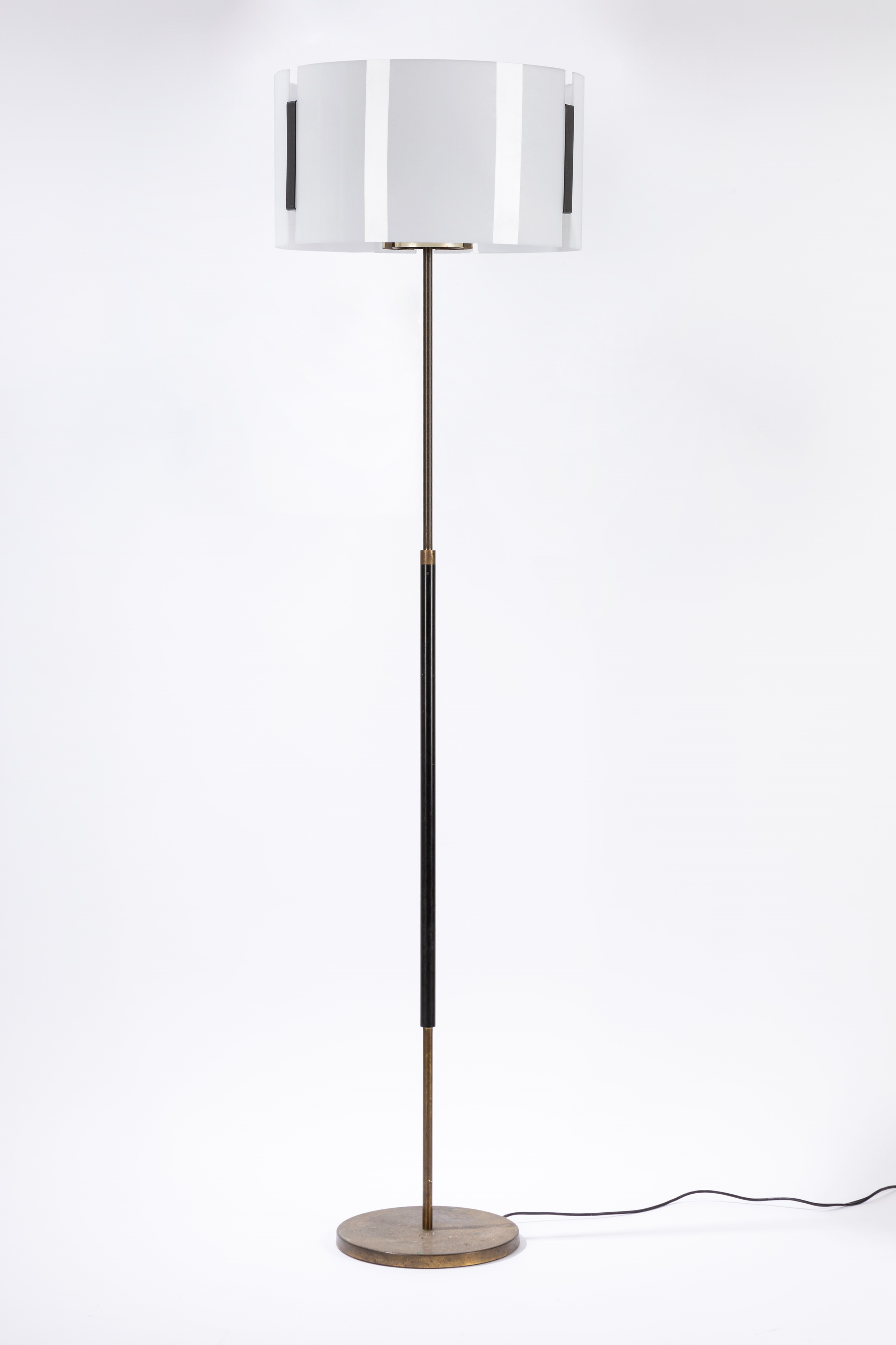 1950 ca. modello 397.Schermo in metacrilato bianco, struttura in metallo verniciato e ottone.