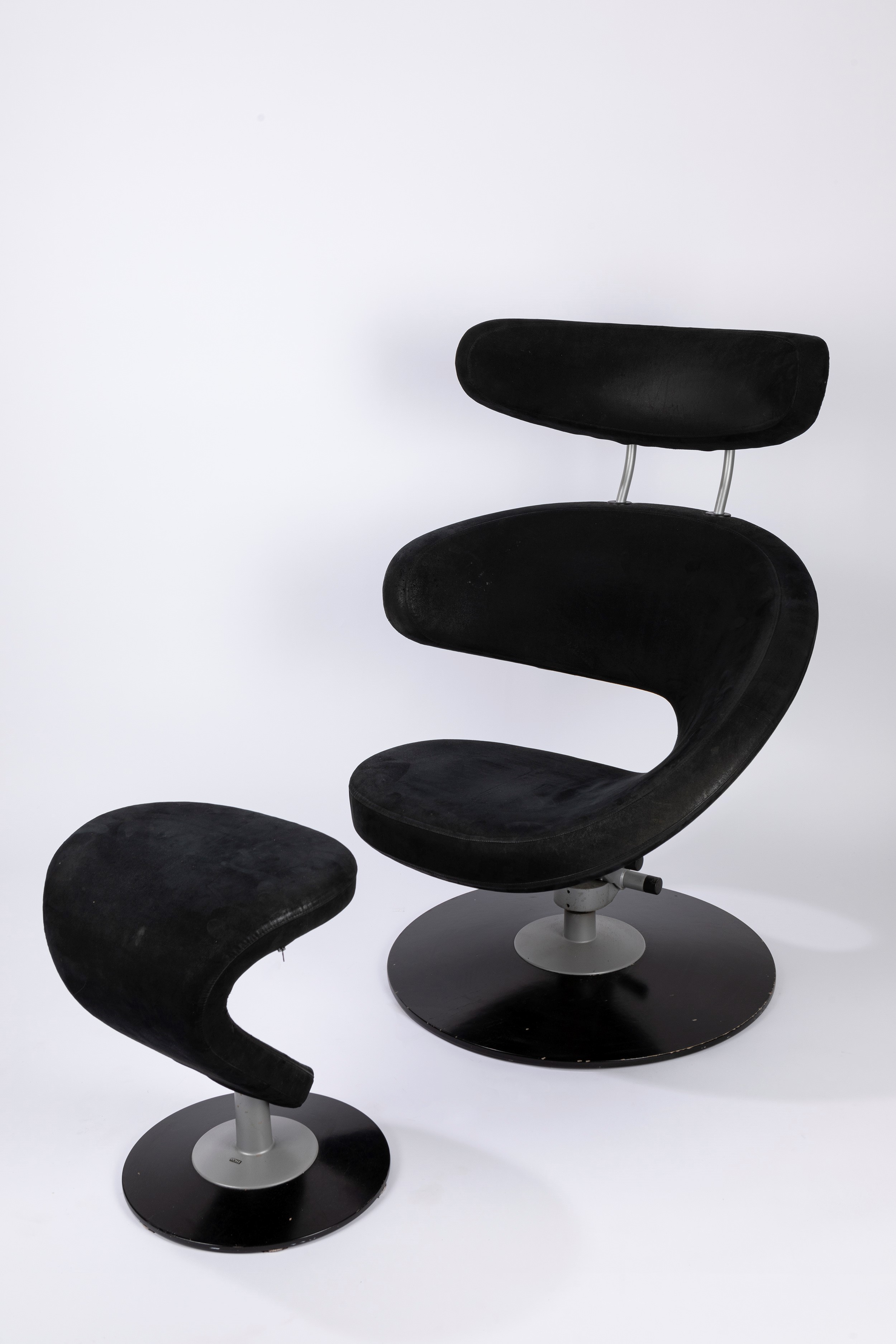 2000 ca. poltrona ergonomica e poggiapiedi rivestiti in alcantara.