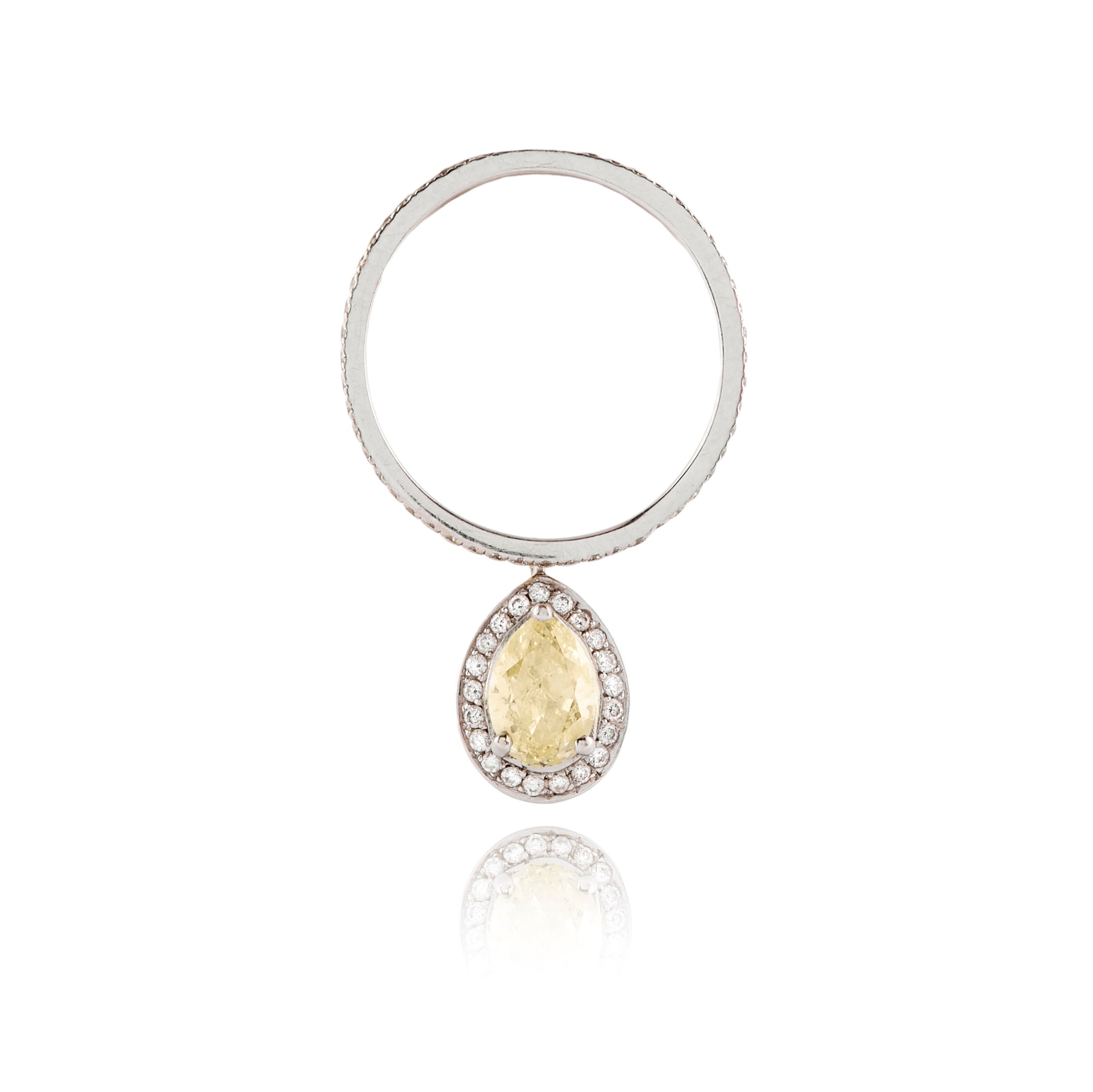 disegno con pendente charms e diamante fancy yellow taglio goccia di ct 1,20 circa, interamente decorato da diamanti taglio brillante a contorno e sul gambo.