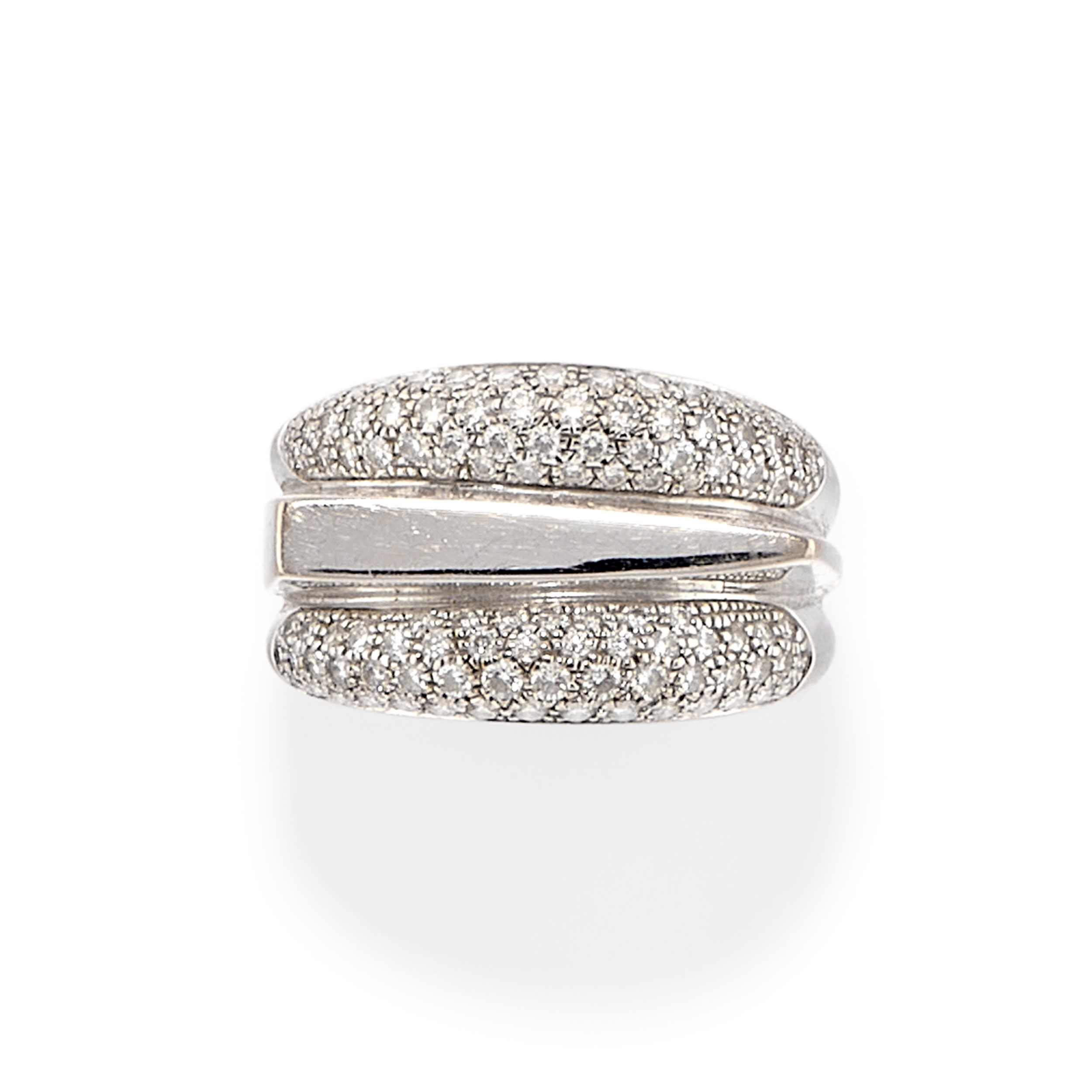 parte centrale liscia con profili in diamanti taglio brillante per totale ct 1,00 circa.