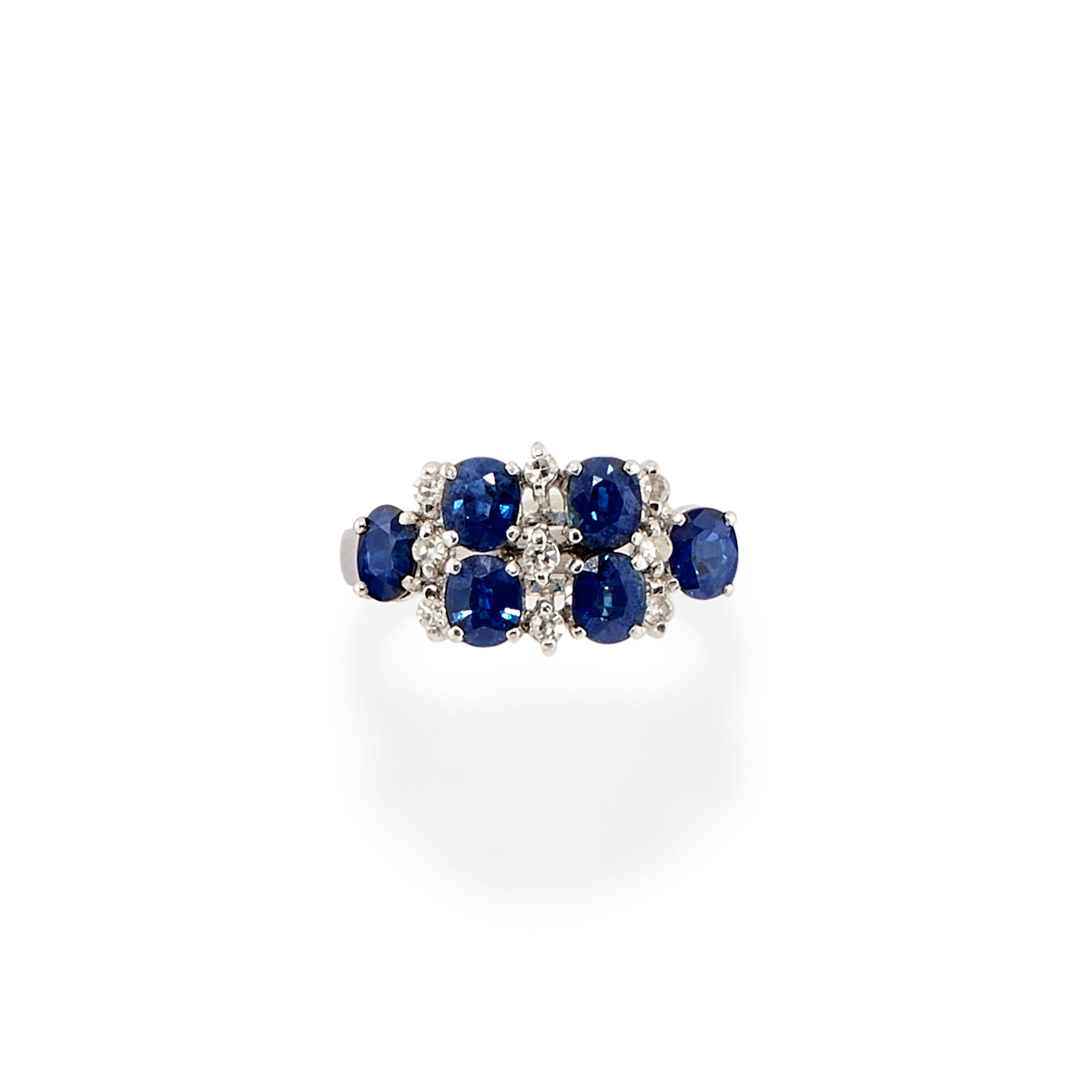 zaffiri taglio ovale per totale ct 1,20 circa e diamanti taglio huit-huit.