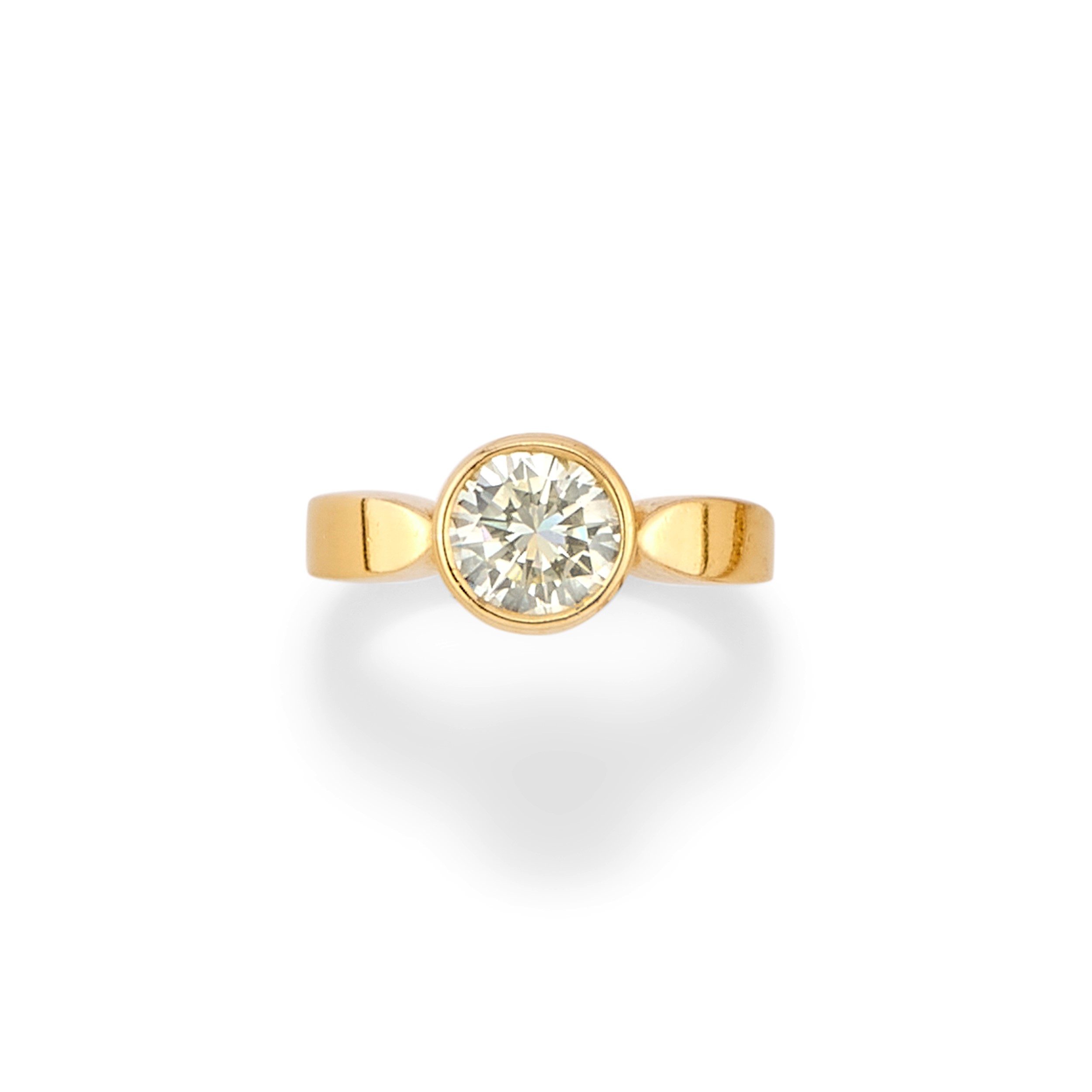 taglio brillante di ct 1,40 circa, prob. colore O/P, purezza VVS.