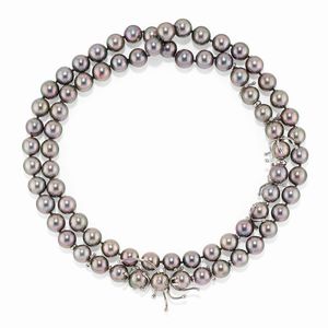 composta da collana e orecchini con perle coltivate di mm 9/9,50 e 12/12,50, impreziosita da diamanti taglio [..]