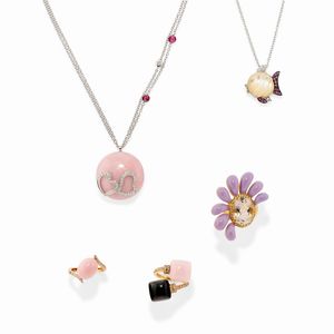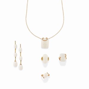 composti da un pendente con catena, una coppia di orecchini pendenti e tre anelli di diverse raffigurazioni. Peso [..]