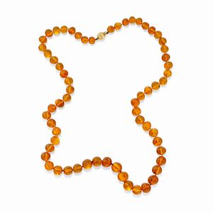 ad un filo di boules in ambra disposte a degradé dal centro da mm 14,00-9,00 circa. Peso g 56,00 cm 75,00