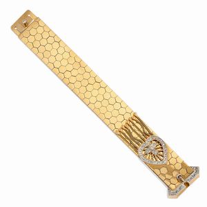 a fascia, interamente decorato da diamanti taglio vecchio e huit-huit per totale ct 14,00 circa. Peso g 88,90 [..]