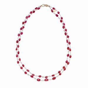 realizzata a rosario con due file di rubini taglio ovale cabochon per totale ct 50,00 circa alternati a diamanti [..]