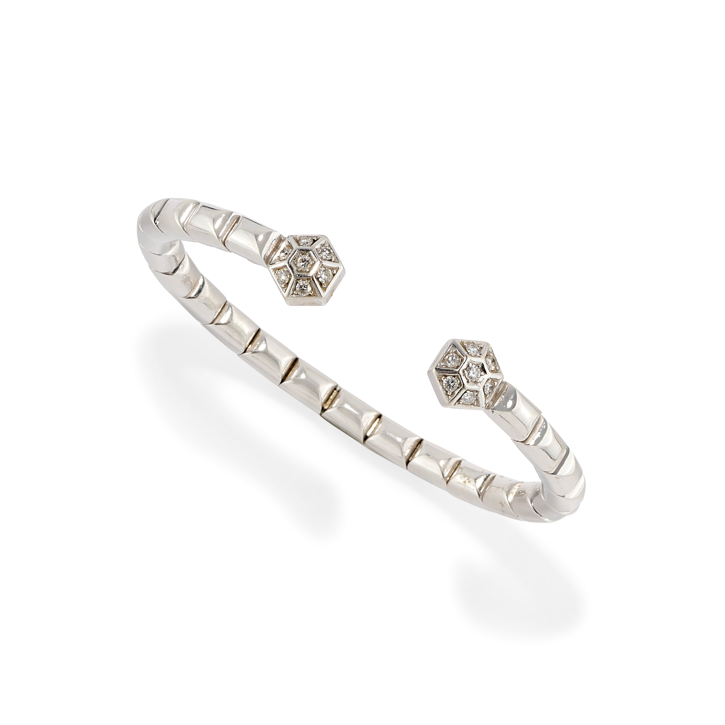 alla schiava con terminali esagonali impreziositi da diamanti taglio brillante per totale ct 0,30 circa.