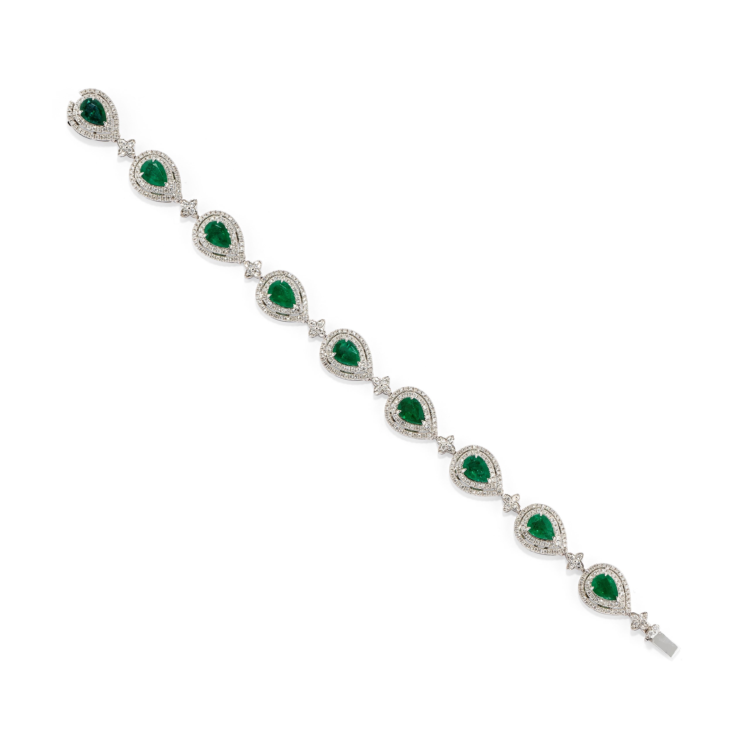 Bracciale in oro bianco 18k, smeraldi e diamanti
