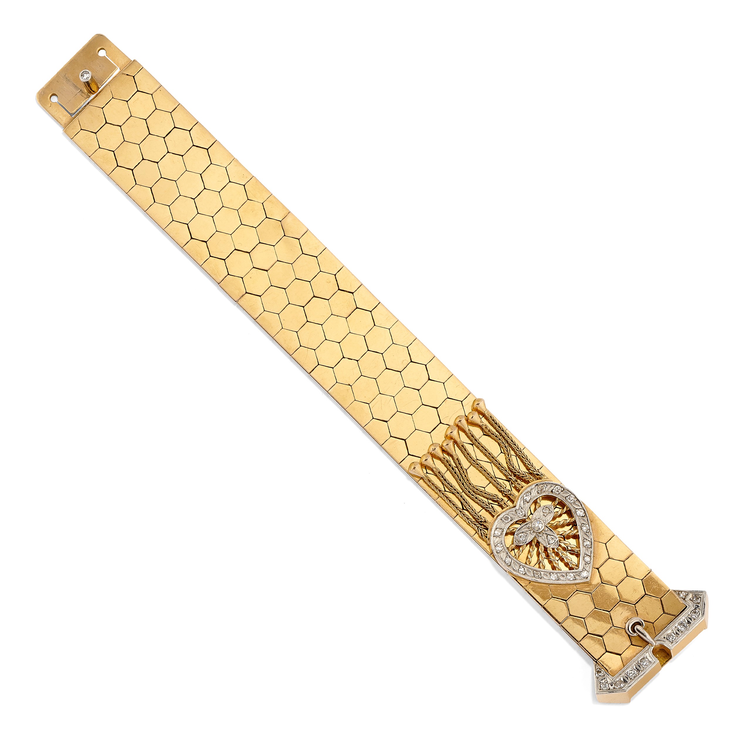 Bracciale in oro rosso 18k e diamanti, 1940 circa