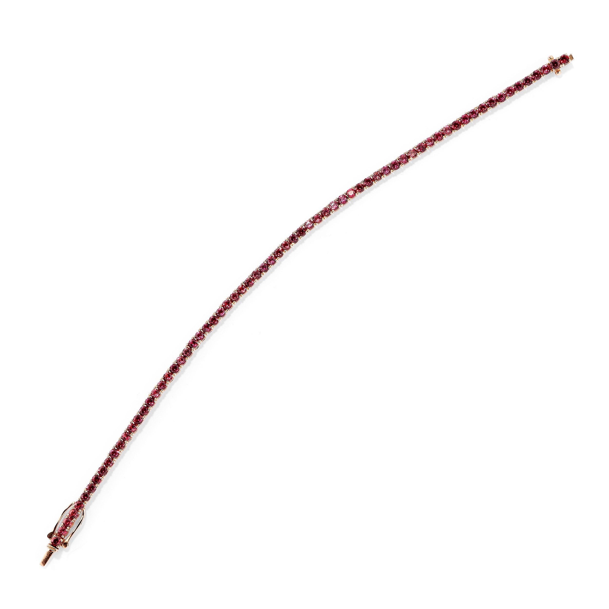 Bracciale tennis in oro rosa 18k e zaffiri rosa
