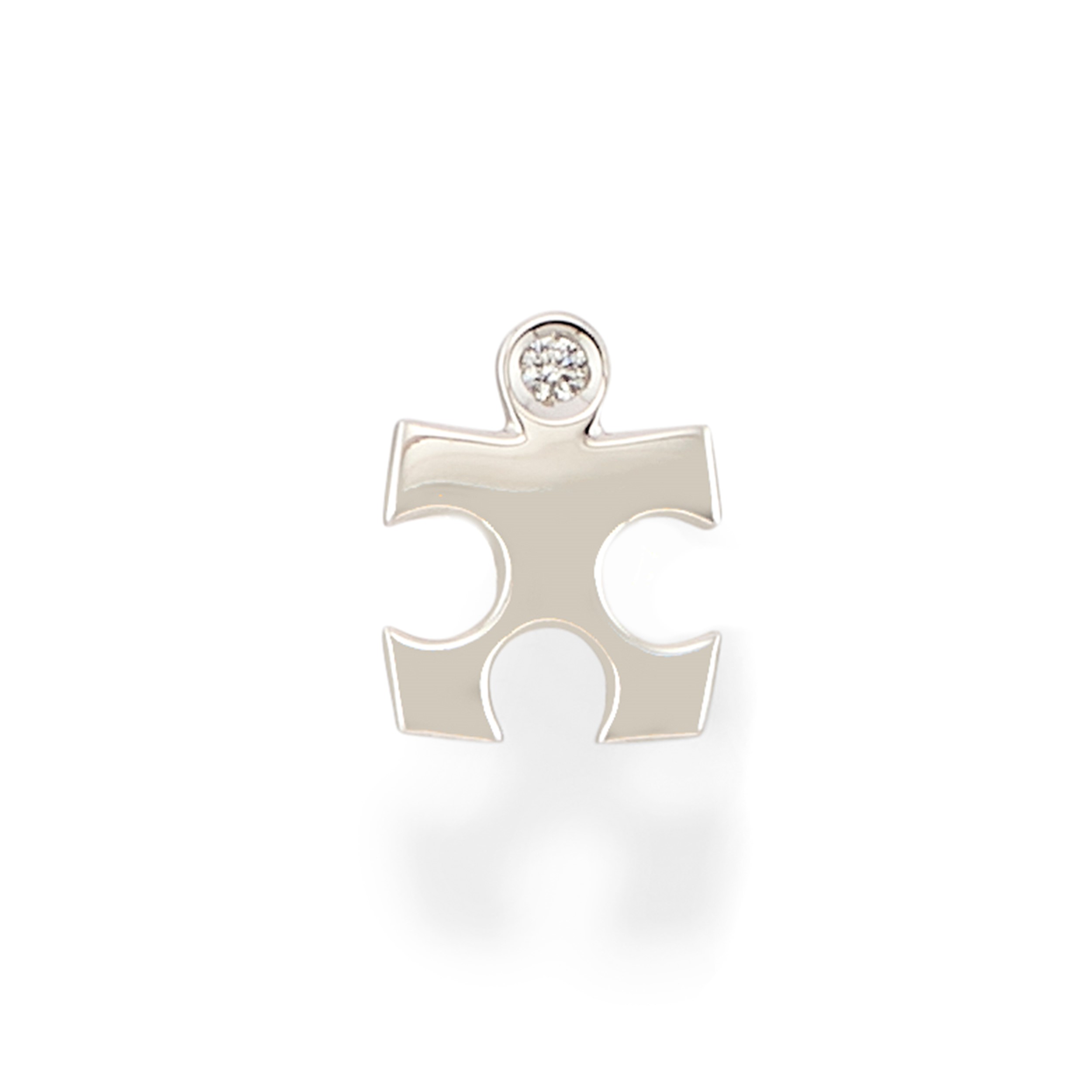 composti da un bracciale, un anello, un pendente con catena e due orecchini singoli, con motivo a puzzle impreziosito da diamanti taglio brillante incolori e neri. Peso g 30,10 misura 15 bracciale cm 18,50