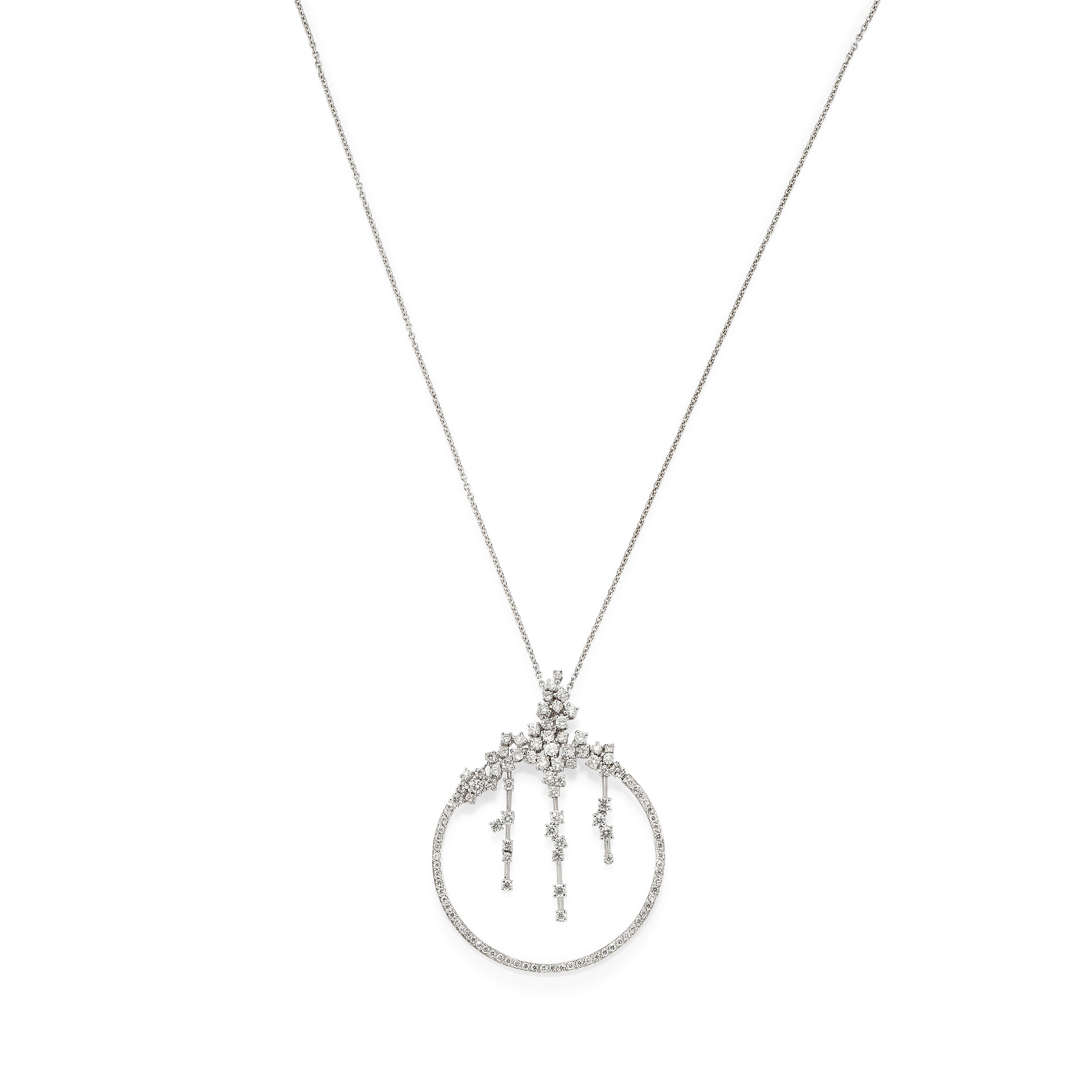 con pendente impreziosito da diamanti taglio brillante per totale ct 2,50 circa, con astuccio.