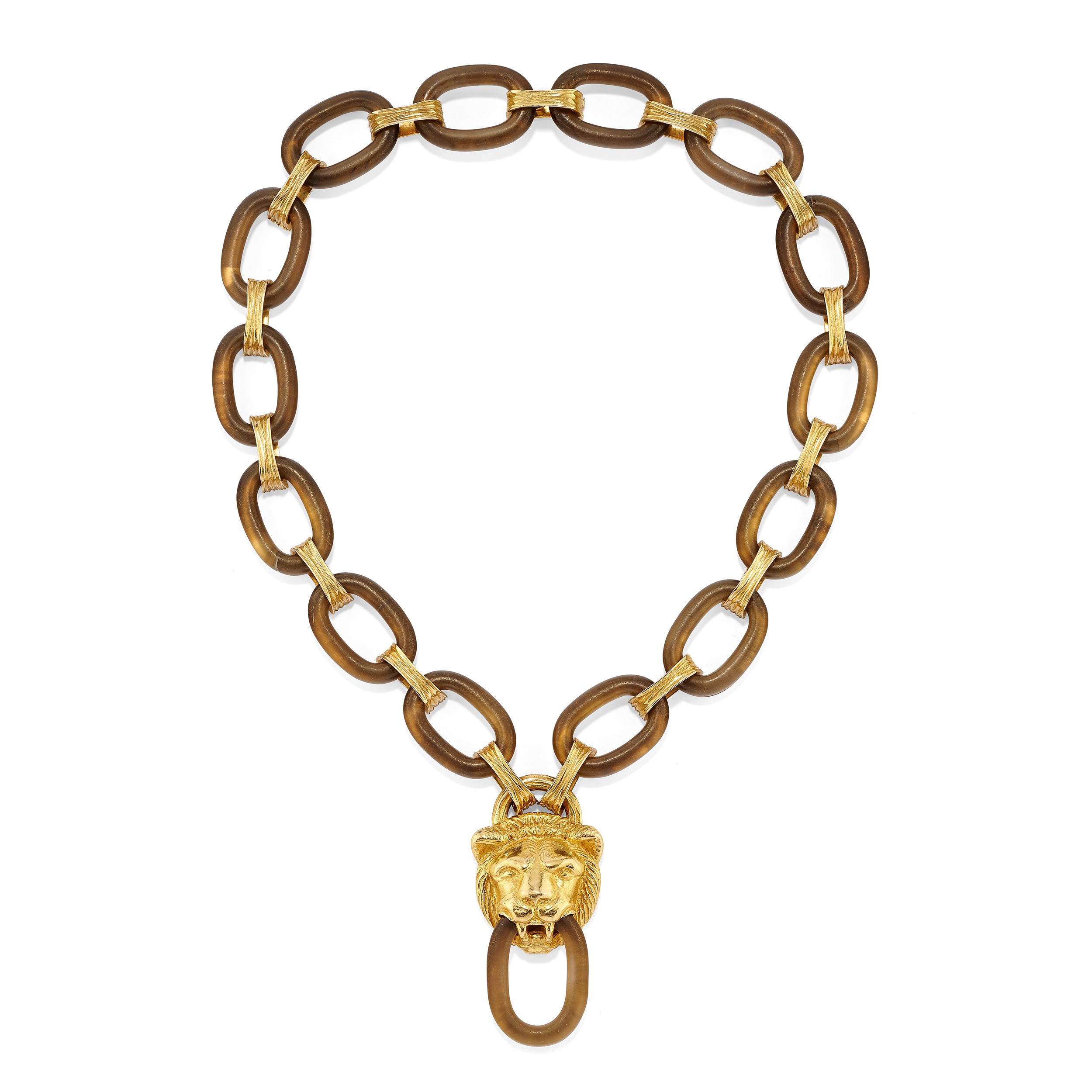 a maglie ovali satinate ed incise con pendente a testa di leone.