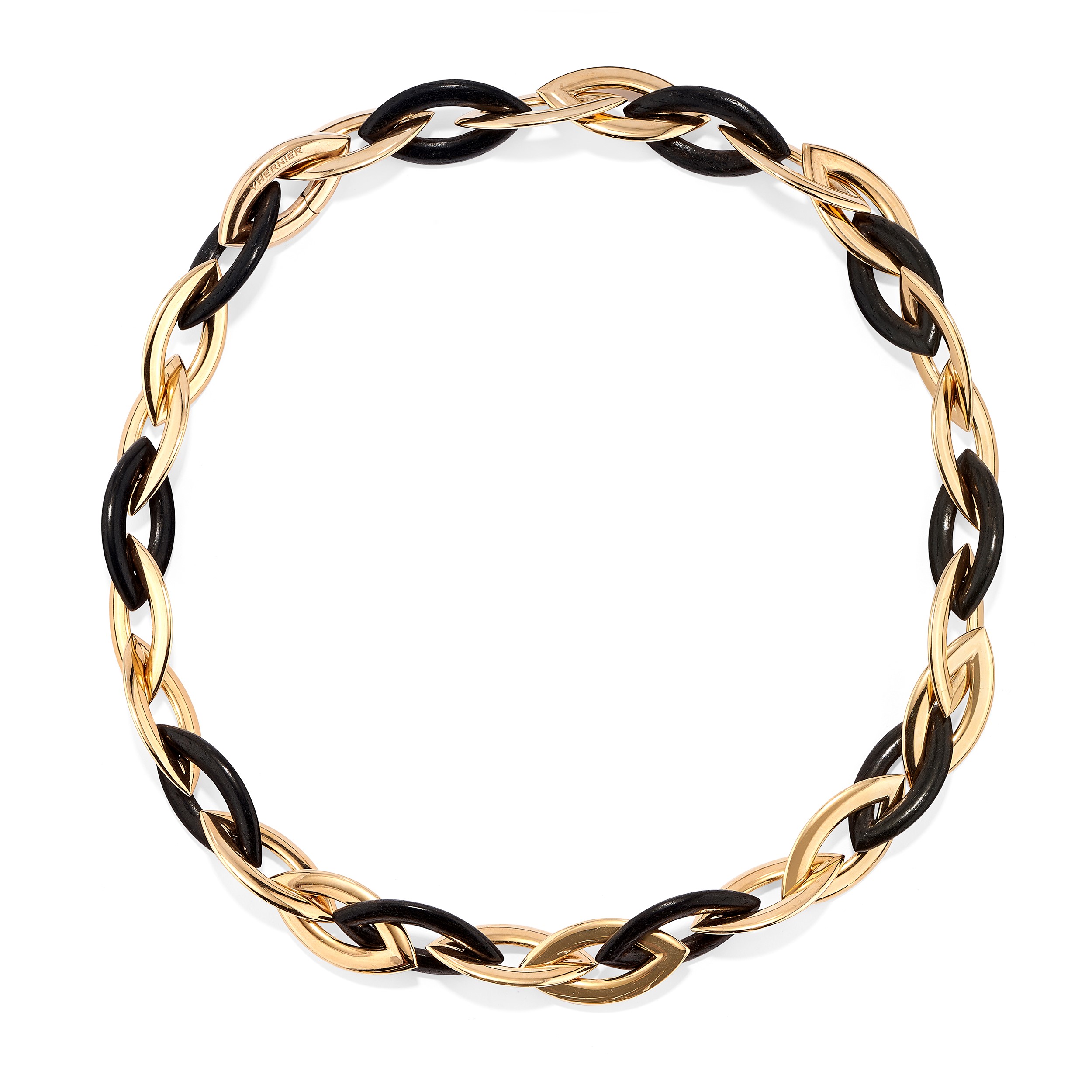 collezione Doppio senso, a catena con maglie ad ogiva in ebano e oro alternati.