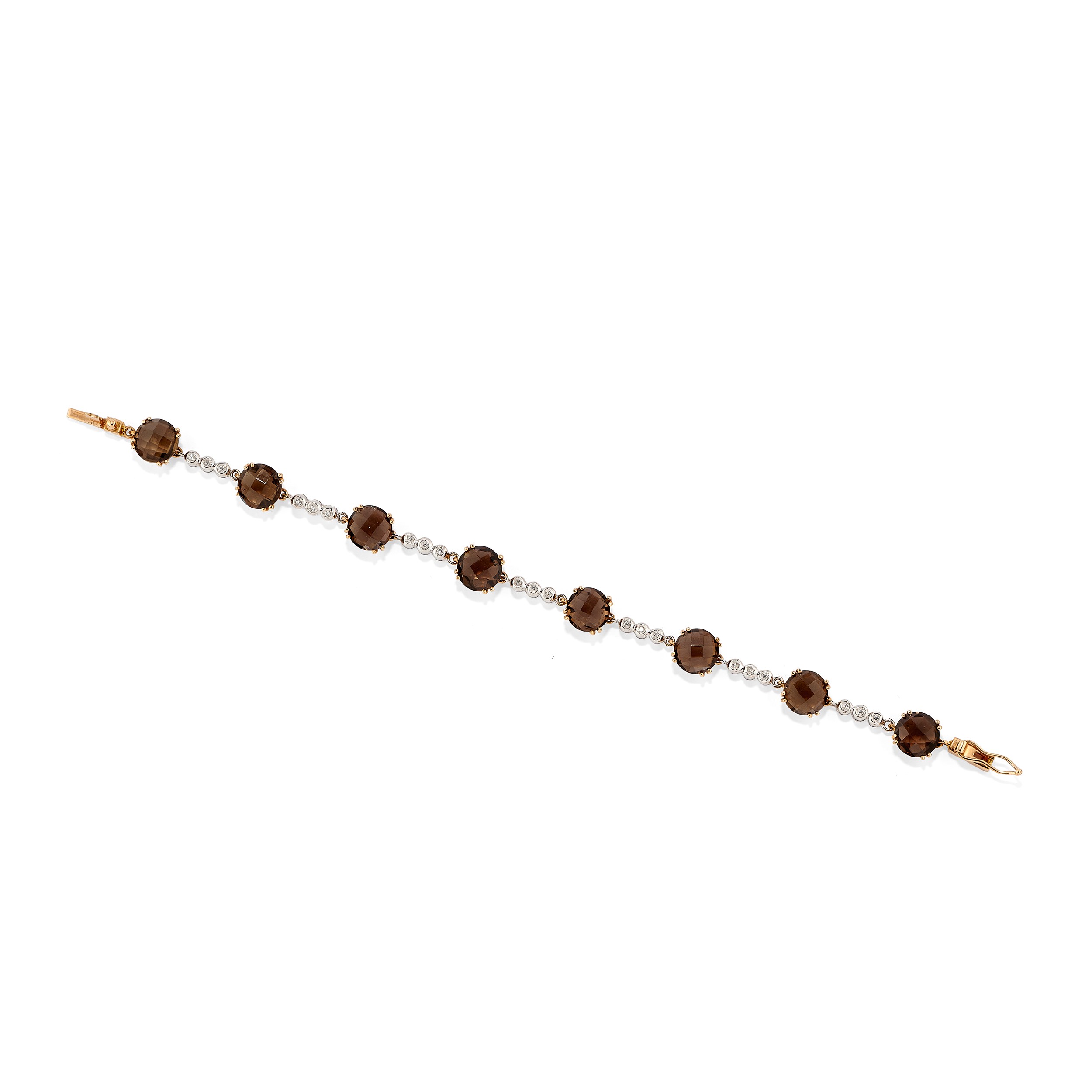 uno a catena con maglie ovali con charms, l'altro con quarzi fumé taglio tondo sfaccettato intervallati da maglie a castoni con diamanti taglio brillante.