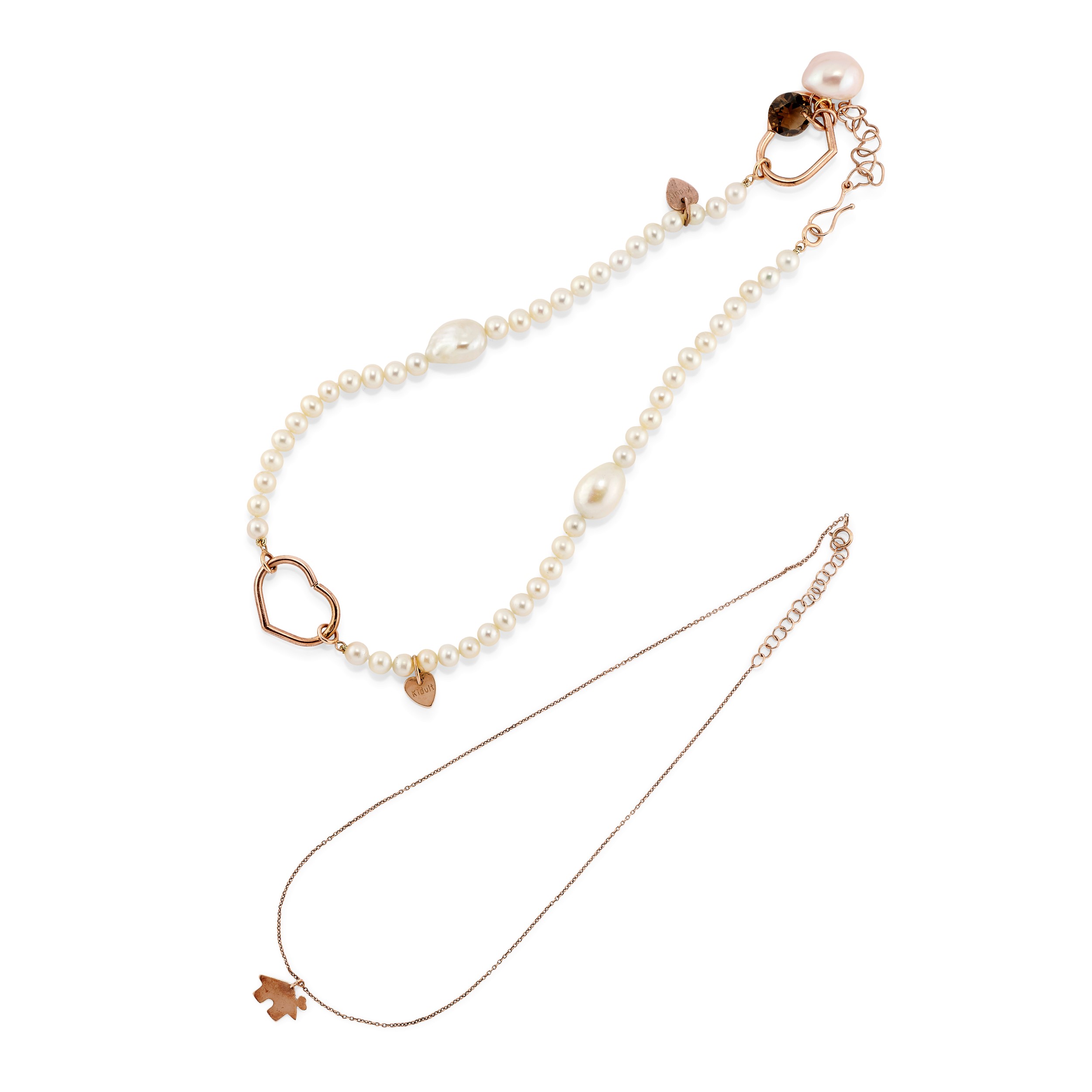 una con perle coltivate d'acqua dolce e motivo a cuore ed una con pendente a casetta.