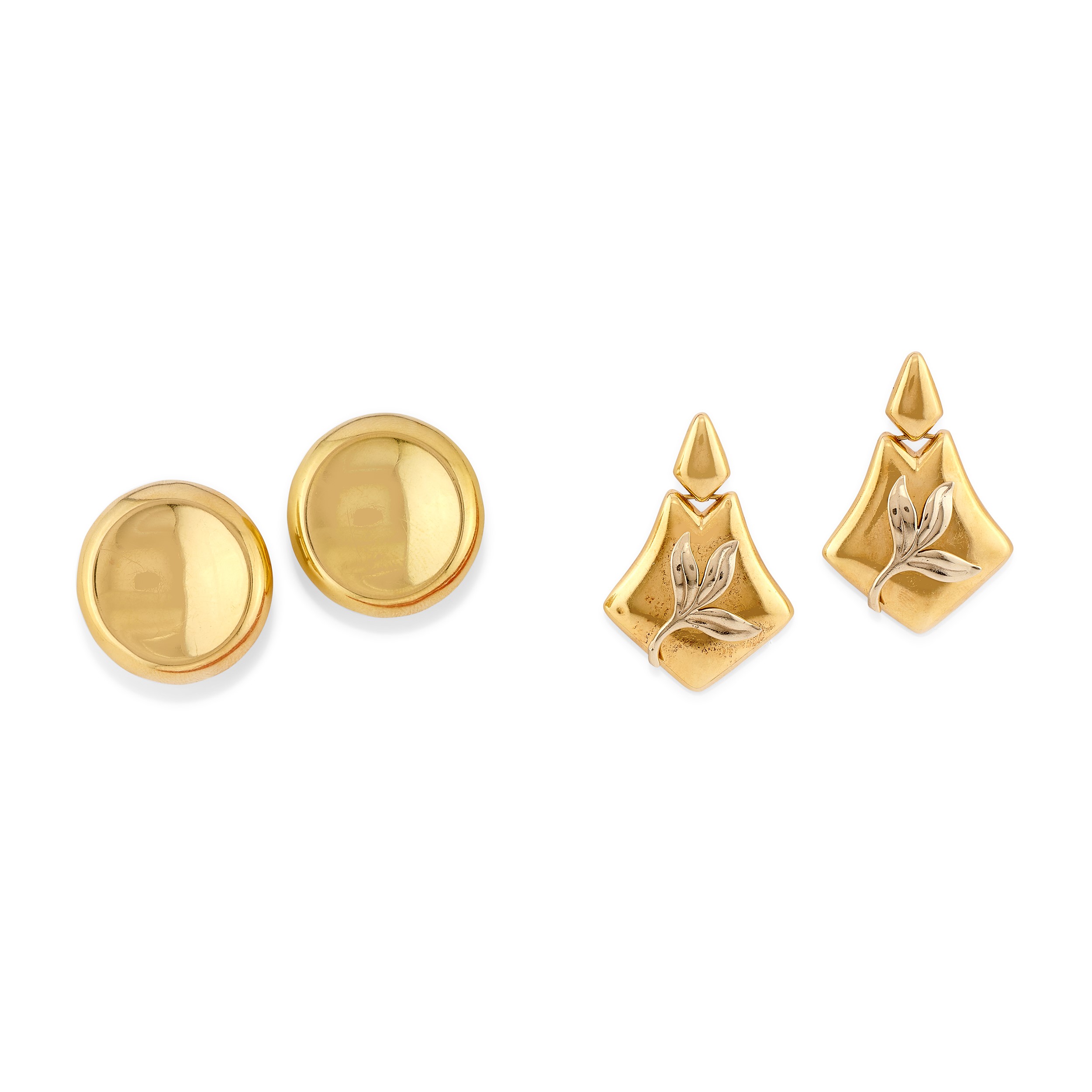 una coppia con decoro a fiore con chiusura perno e farfalla e una coppia a bottone con chiusura perno e clip.