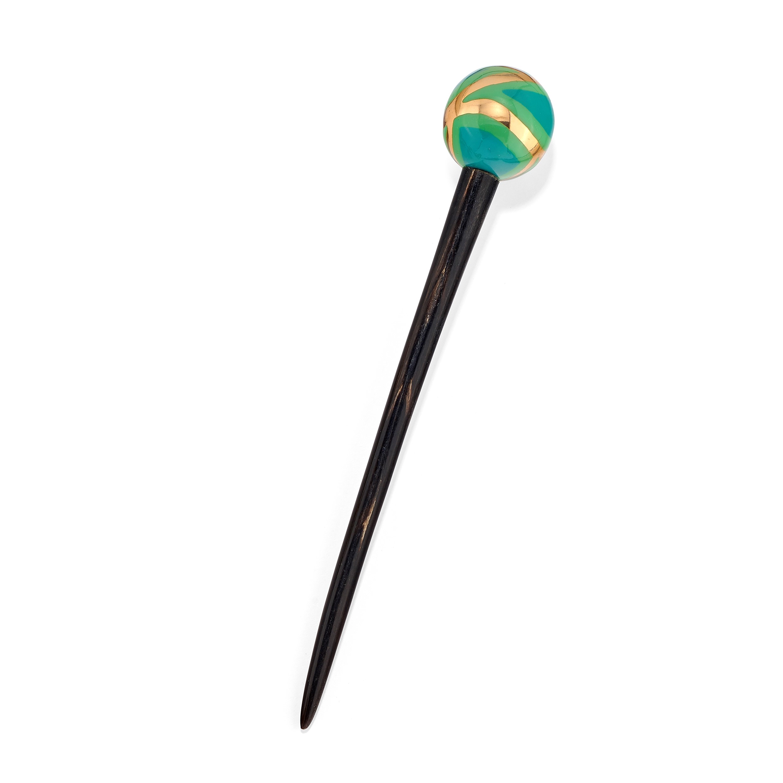 Fermacapelli in oro rosa, smalti e legno