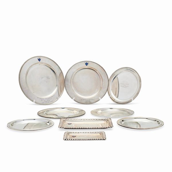 due di forma rettangolare e sette rotondi con inicisioni raffiguranti trofei.