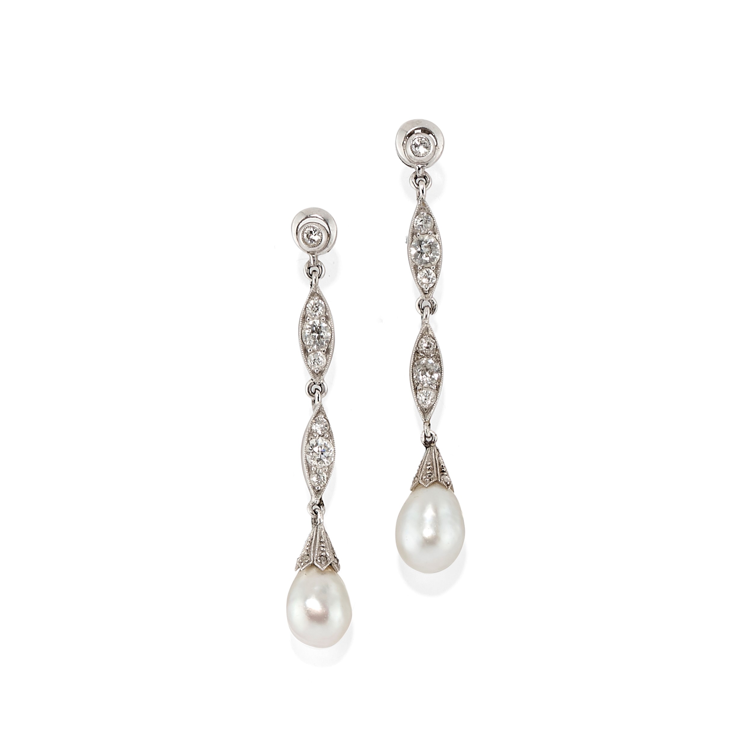 pendenti, a settori ovali con terminali a goccia, decoro a milligrano, diamanti taglio brillante, chiusura a perno e farfalla.