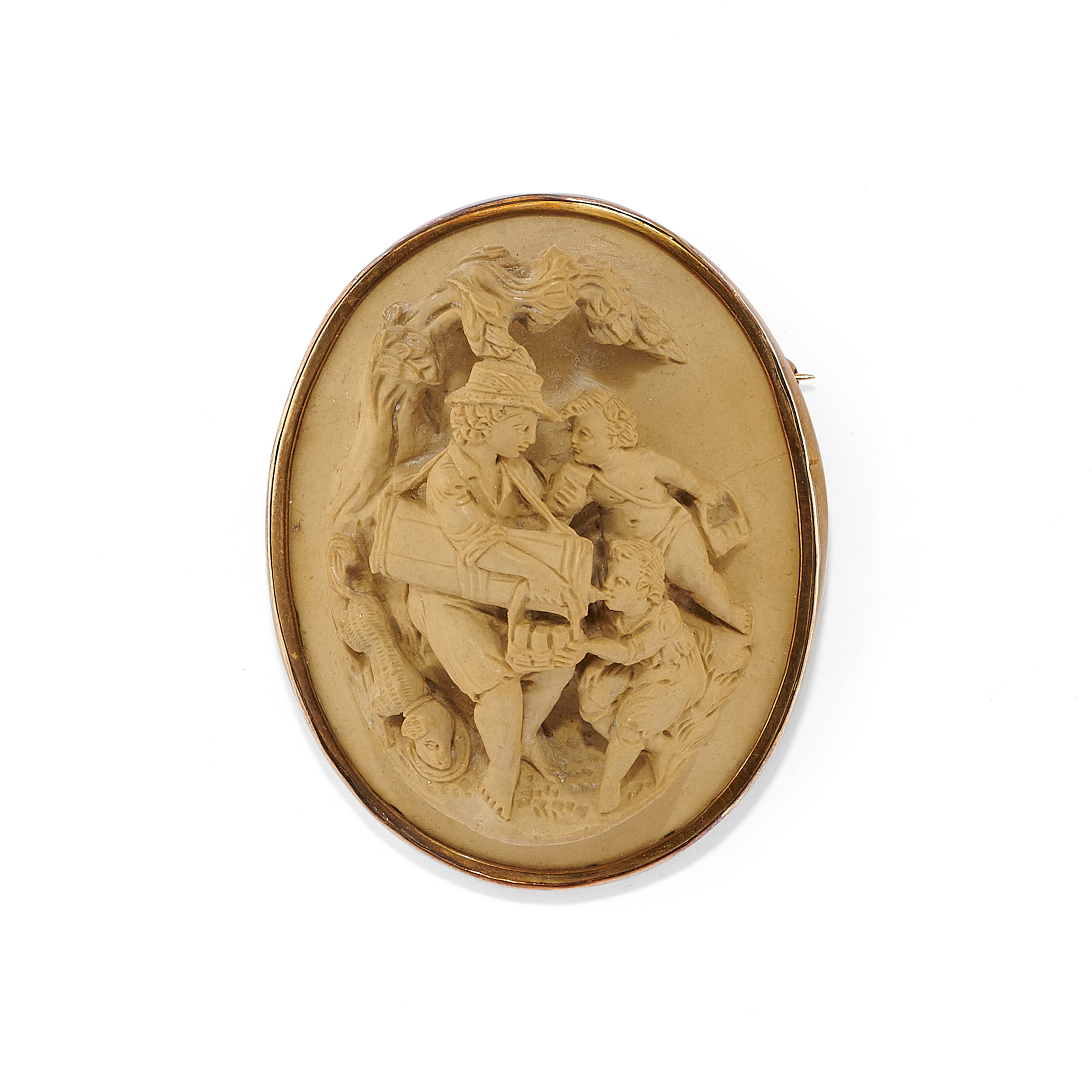 Spilla in metallo dorato e cammeo in pietra lavica, fine XIX secolo