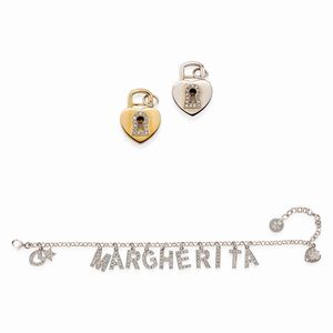 un bracciale con scritta Margherita e due lucchetti a forma di cuore.
