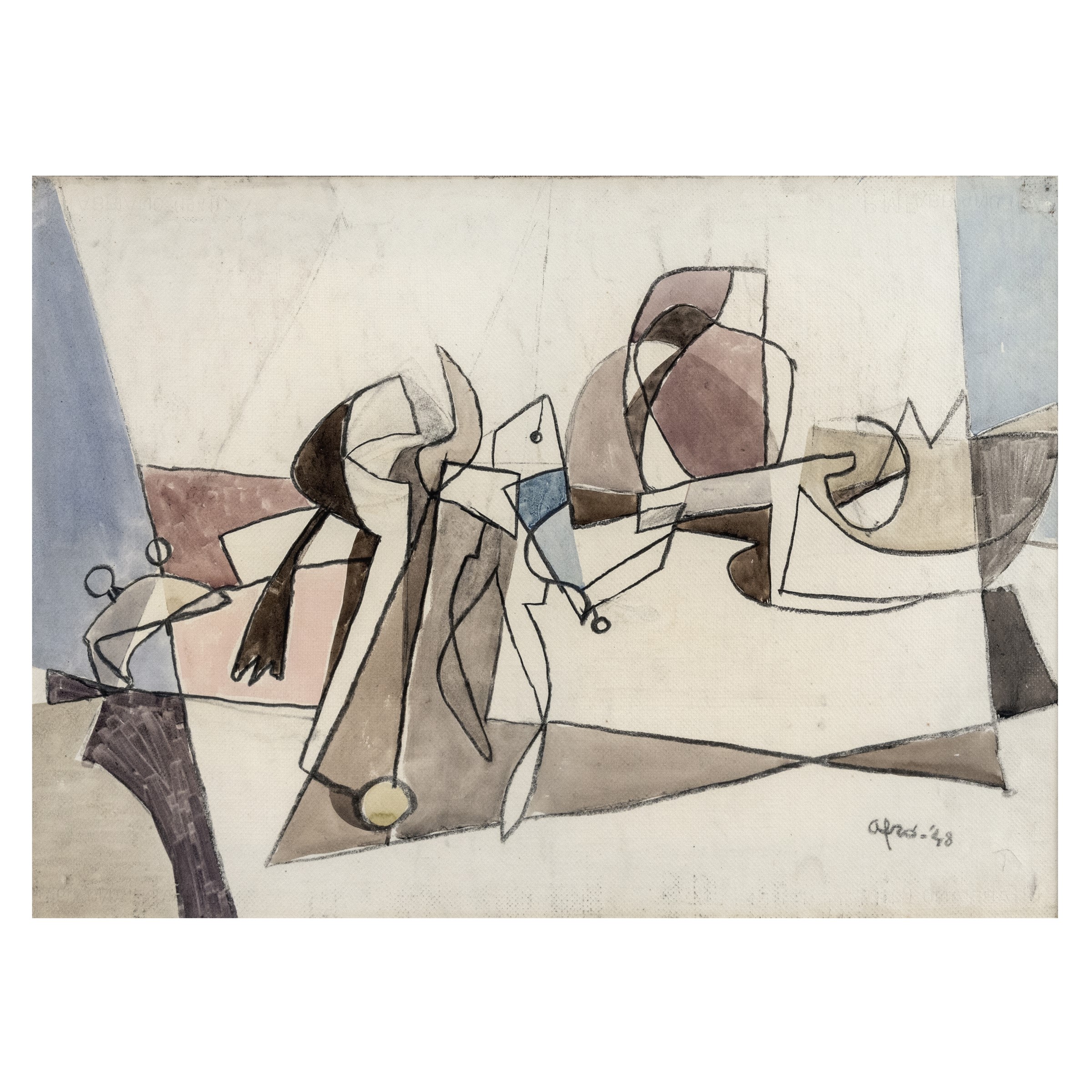 Udine 1912 - Zurigo 1976 Pinze e tenaglie .2, 1948, tecnica mista su carta intelata, firmata e datata in basso a destra, entro cornice.