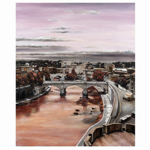 25x30 cm. Roma 1949 Le Mantellate, 1989, olio su tela, firmato e datato sul retro, entro cornice
