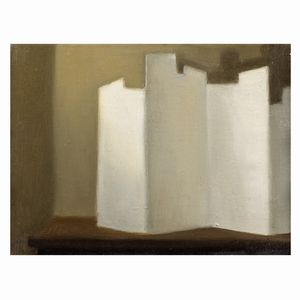 40x30 cm. Catania 1937 - Roma 2000 Riverbero,1996, olio su tela, firmato, datato e titolato sul retro, entro [..]