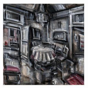 50x50 cm. Bari 1968 Nella stanze di Andrea, l'attesa, 2013, olio su tela, firmato, datato e titolato sul retr [..]