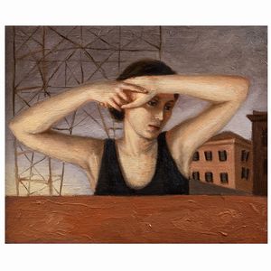35x20 cm. Roma 1949 Senza titolo, 2002, olio su tavola, firmato e datato sul retro, entro cornice