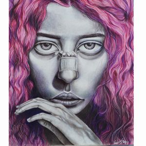 70x50 cm. Roma 2001 Volto n. 2, tecnica mista su carta, firmata in basso a destra