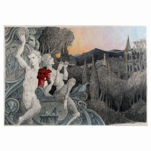 24x24 cm. Roma 1965 - 2019 Pittorico per un armadio, 1994, acquarello su carta, firmato, datato e titolato, entro [..]