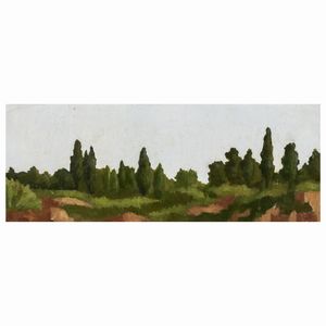 12x32 cm. Roma 1965 - 2019 Il verde del Palatino, 1990, olio su tavola, firmato, datato e titolato sul retro, [..]