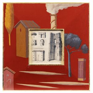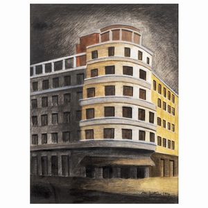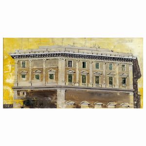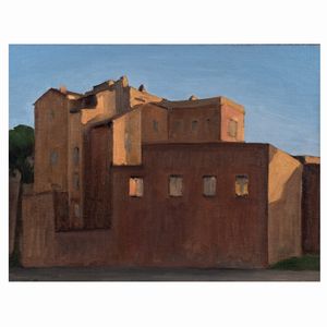 23x47 cm. Tripoli 1960 Edificio a Santa Maria Maggiore, 1998, olio su tavola, firmato in basso al centro, entro [..]