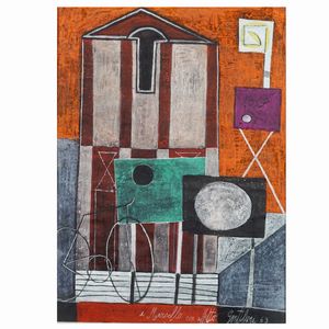 44x32,5 cm. Faenza 1909 - Roma 1981 Senza titolo, 1963, tecnica mista su carta, firmata, dedicata e datata in [..]