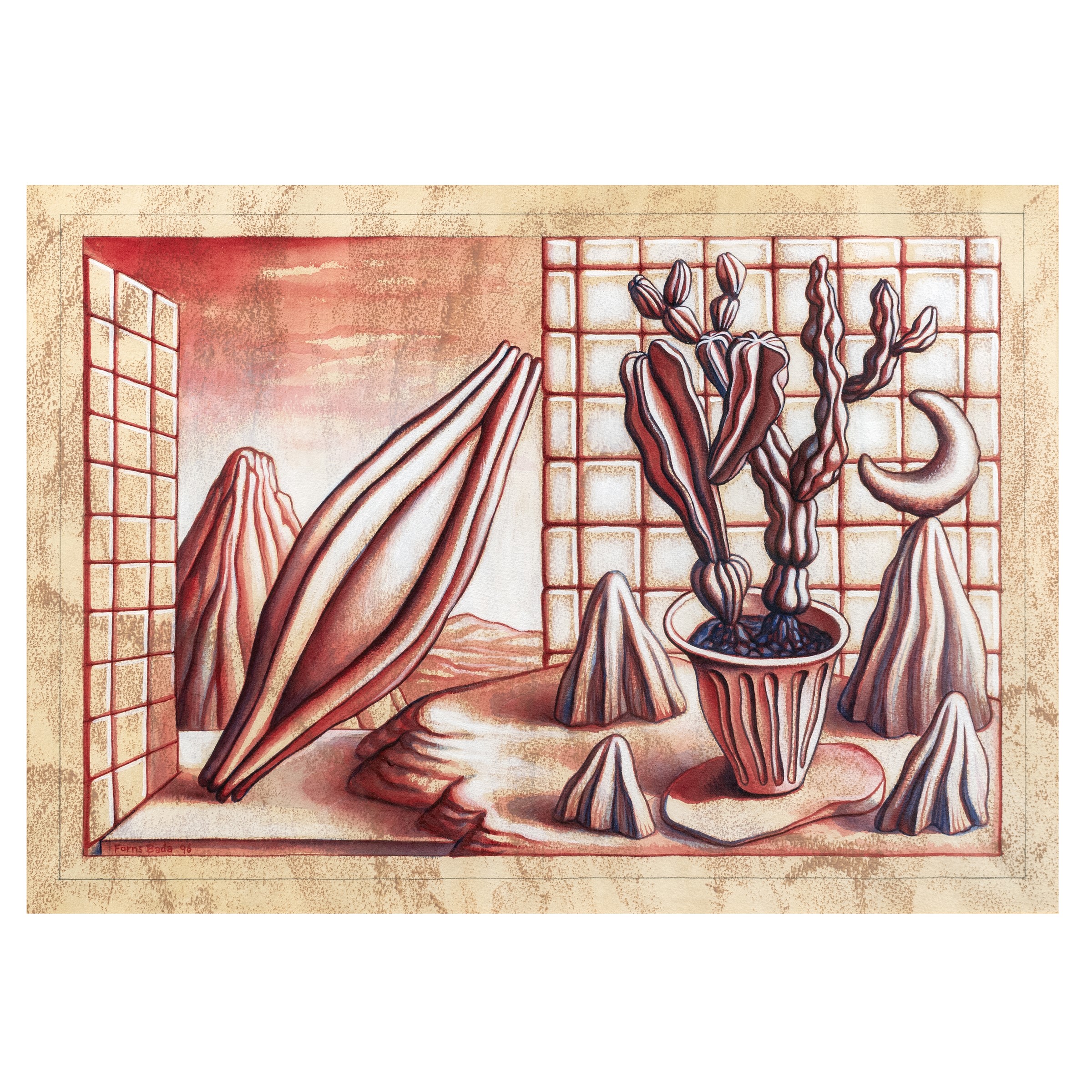 Madrid 1956 Viaggio In Tunisia, 1996, tecnica mista su carta, firmato e datato in basso a sinistra, entro cornice